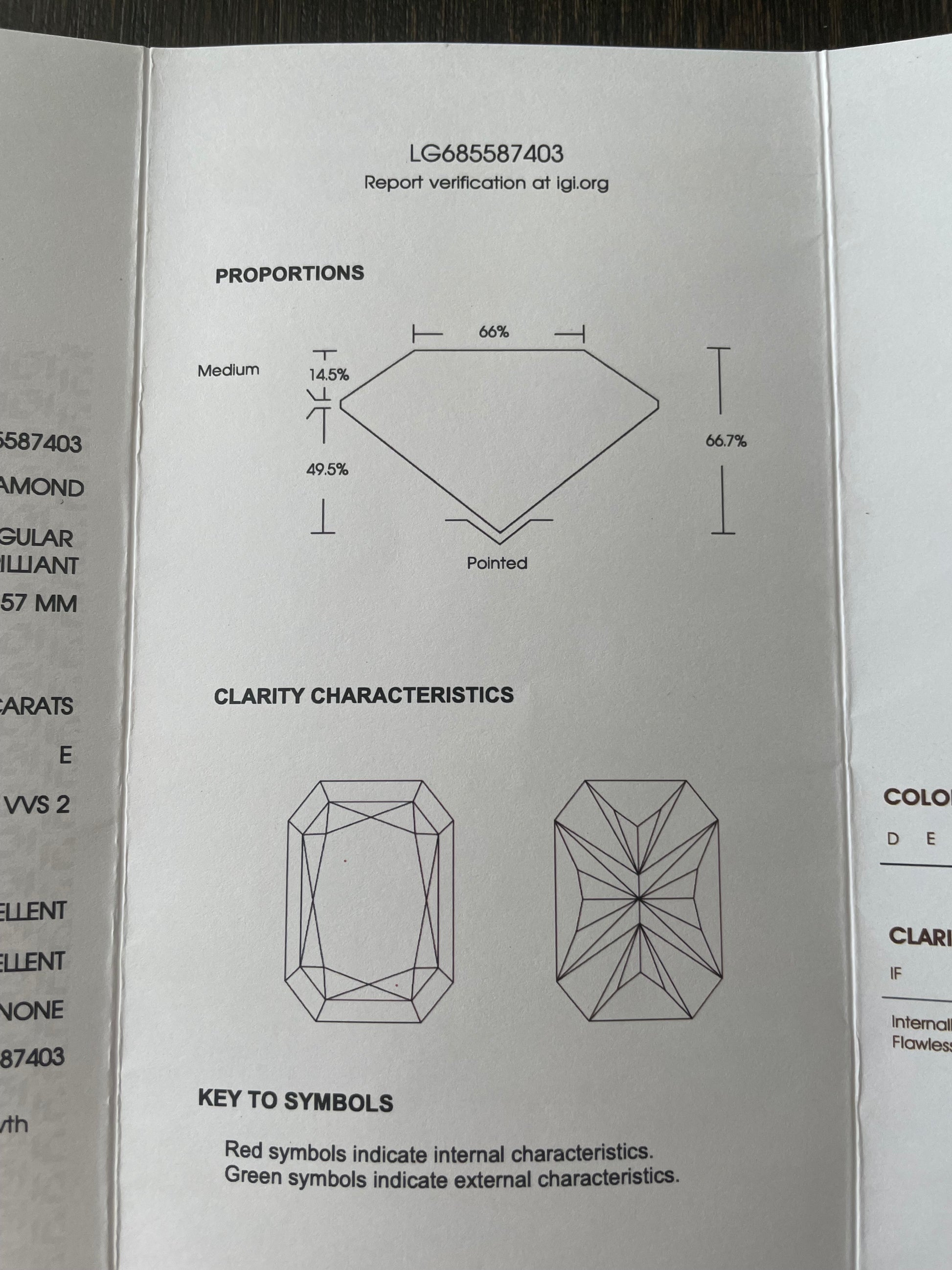 The diamond is graded E color and VVS2 clarity, giving it exceptional brightness and purity. It also boasts excellent polish and symmetry, ensuring maximum brilliance and fire. Certified by IGI (Report #LG685587403), this stone is Type IIa and grown using the advanced CVD method.